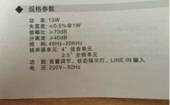 作为一个音箱最重要的功能,当然就是音质啦!首先看了下音箱参数: