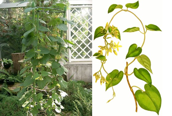 【另外一种“驱蚊草”,草本夜来香 Telosma cordata (Burm. f.) Merr. ,萝藦科Asclepiadaceae,夜来香属 Telosma 。这里要提一下,夜来香是一个俗称,包括很多种植物,除了这个草本夜来香外,还有茄科夜香树属的夜香木、石蒜科晚香玉属的晚香玉、柳叶菜科月见草属的月见草以及夹竹桃科的夜来香】