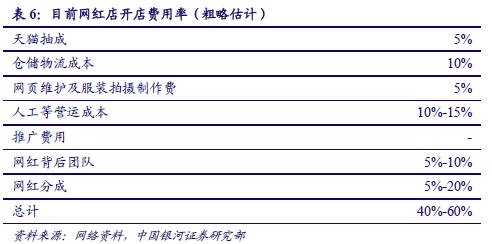 注:Lin 家一个网红的背后支持运营团队的费用支出达到100 万;若以如涵公布的数据计算,其公司旗下有50 名网红,公司一年销售额接近5 亿,可粗略得出网红背后团队费用率为5000 万/5 亿=10%