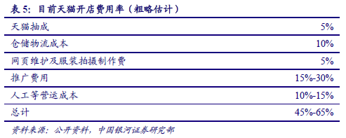 在天猫平台抽成、平台引流广告费用与日俱增的情况下,各大品牌广告费用率也逐步上升。如电商品牌韩都衣舍,其推广费用占总收入的比例已超过10%,而其众多子品牌的推广费用大多占总收入的20%-30%。