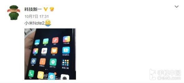 小米Note 2一直都备受广大用户期待,更有业内分析师潘九堂透露它将于10月底发布。现如今,再有网友放出一记大招,直接曝光了小米Note 2的真机,如此一来该机将于本月发布的苗头也越来越旺了。