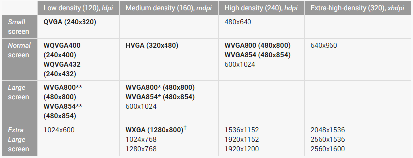 hdpi [480×800、480×854、540×960](早年的低端机,屏幕在3.5英寸档位;如今的低端机,屏幕在4.7-5.0英寸档位)