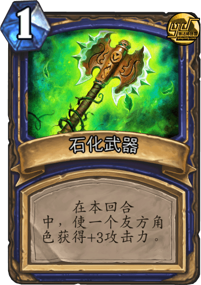 4.石化武器:在本回合中,使一个友方角色获得+3攻击力,主要是和已经装备上的毁灭之锤配合,可以打出10点伤害。