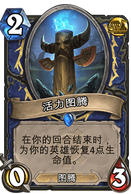 003.活力图腾:在你的回合结束时,为你的英雄恢复4点生命值,再加上其自身的3点生命值,至少可以转移对手的7点伤害。要是躲着嘲讽后面可能还会存活更长时间。