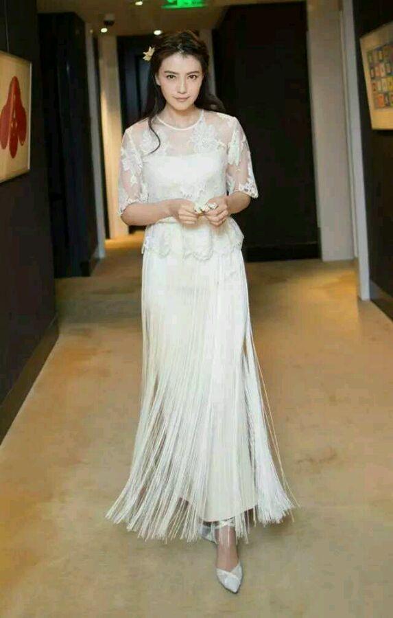 高圆圆长相很大气,这条拖地长裙很显身高,下图下身流苏设计俏皮优雅气质姑娘会很喜欢这种。