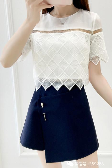 短款不规则蕾丝衫,直筒非常显瘦,又很好的拉长身形! 版型是用流行的裙裤的样式打板的,斜开暗扣的装饰设计,远看像裙子但其实是短裤,新潮范十足! 总体来说这款套装又好穿又有设计感的套装,出门完全不怕撞衫哦~