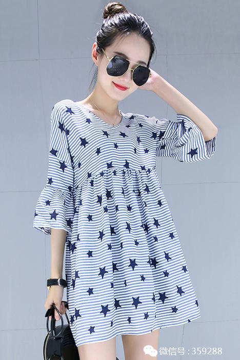 小清新娃娃裙,星星条纹印花,俏皮减龄,非常有活力哦! 后背镂空露背设计,甜美中带点小性感,更添加时尚范~