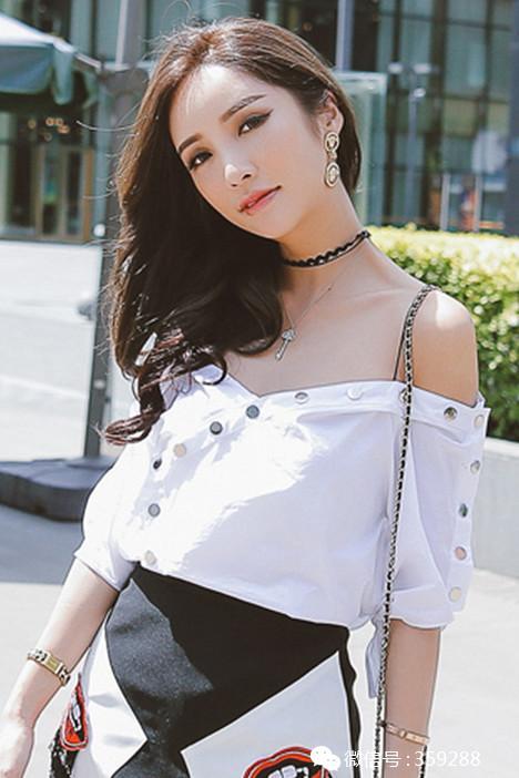具有性感的吊带一字领白色上衣可以变换出露肩的造型~ 袖口的绑带添加细腻的甜美元素!独特设计的纽扣,巧妙时尚,既能作为装饰,同时又很实用,