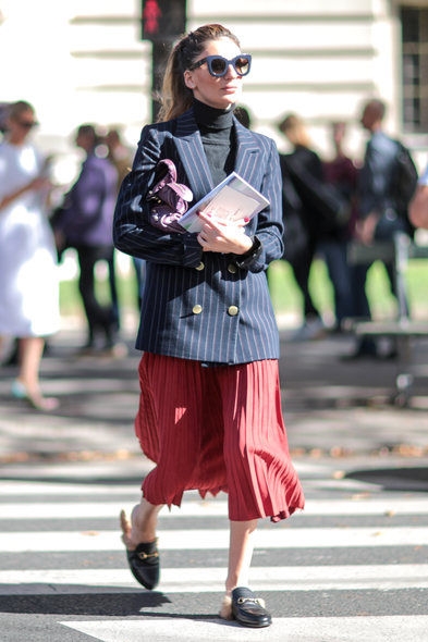 就算是晚上要出席派对场合,穿上百褶裙的装扮也不会太失礼。以若隐若现的透视上衣来配搭,不会太夸张之余又充满派对气氛。就像Olivia Palermo以透视上衣搭配百褶裙出席派对场合,将优雅与性感两种元素合而为一。