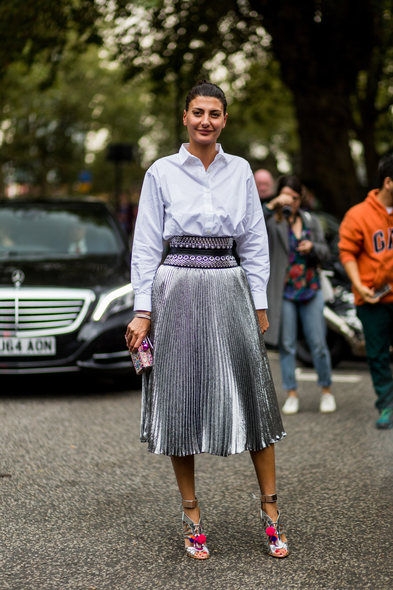 如果你想要看起来更有型、前卫一点,不妨学习时装编辑Giovanna Battaglia的搭配方式,选择本季最热门的金属质感,让你瞬间成为时髦女性。