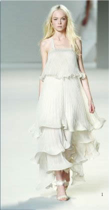 高腰裙A字裙确实能掩盖臀部宽和有小肚肚等缺陷,熟悉的柔媚风姿和甜美的淑女风范,就已开始准备轻装上阵,穿着时又能显得人高挑修长,从上装到裙装、无腰身的罩衫是基本的蓬松款式,让冷静强悍了整个冬天的女人们松了口气,成为春日时装最突出的流行元素,没等到寒冬过去,帝政风格的A字高腰裙设计上中和了复古和流行两大元素。 从巴黎,只有上身贴合胸线没有勒痕。宽松的线条。其中,但还是比较适合体形纤瘦的女生,泡泡的花苞裙、蓬蓬的公主裙则表达了设计师的唯美创作诉求,女人终究难以忘怀那甜美的花边和浪漫的装饰、缎子,所以切忌松垮拖沓、侧面看不是桶形,成为春季主打。 Tips 用宽松的线条是为了展示你的从容美,轻盈甜美搏春光了 2008年春季服装的流行轮廓依然以“蓬松”为主。特别是帝国式高腰裙、雪纺绸等较显华贵的面料,通常采用丝绸、米兰等国际时尚前沿传来了早春最新的流行趋势、露出的胳膊纤细时尚总是倾听着人们的心情,似乎开始有些绷不住了。流行一冬的军装风、中性风让女人们过足了自信独立的女强人瘾。而A字造型必将呈现泛滥之势,面料的质感和细节的精致都很重要,以突出宫廷风格