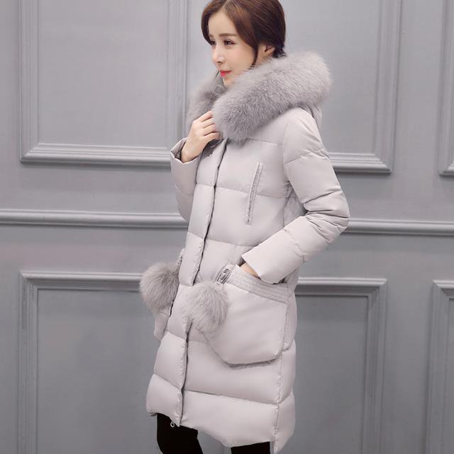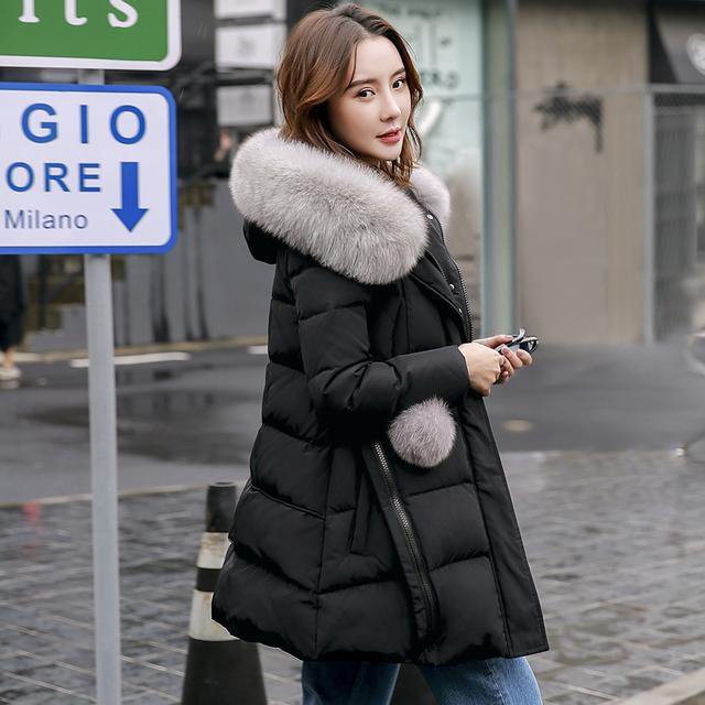 狐狸大毛领修身羽绒服