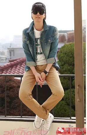 复古风牛仔外套,做旧的颜色很能凸显个性,搭配白T恤衫和休闲裤+帆布鞋,十足潮男范儿,很不错呢!