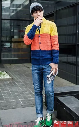 针织衫可是男生春季服装搭配不可少的,撞色的针织衫,带来缤纷视觉感,搭配牛仔裤和帆布鞋,休闲时尚都兼具。
