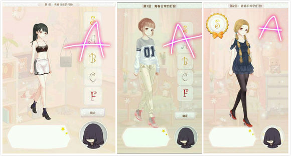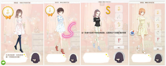 进入关卡,然后观察一下搭配,然后退出,再进入关卡,再观察搭配,再退出。等到你观察足够多的搭配时你会发现,有些衣服头发鞋袜居然出现了很多回,并且看上去是符合题目的!那么这些就是标准搭配,挑一个S的裙子(出现次数最多的),然后头发也可以,但是鞋袜不怎么常见的,打上A。听起来很复杂,实际操作,嗯,也是很复杂,但是正确率比F大法相对高!