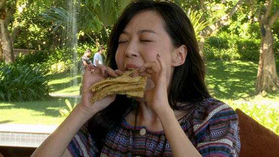 李金铭与公公婆婆到达三亚之后不久,就发现餐厅有“大胃王挑战赛”。李金铭几乎想都没想就拉着公公一起接受了挑战。他俩在四十五分钟之内吃下了两个超级大的葱油饼,还喝光了8瓶啤酒!李金铭的吃货实力得到了充分展示,为了快速消灭葱油饼,她把六块饼叠起来一起吃。虽然她嘴里嚷着“怎么这么多”“好难咽下去”,但没过多久眼前的“饼堆”就被一扫而光。李金铭公公也实力不俗,他能一口气喝下一瓶啤酒。最终,他俩挑战成功,轻松晋升大胃王。