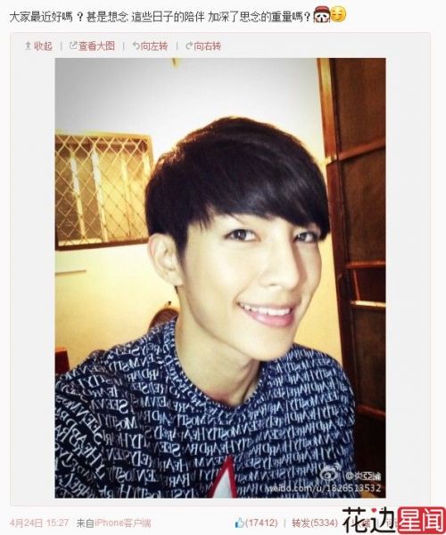 炎亚纶在微博和粉丝打招呼,“好久不见,现在也可以去IG Instagram 去找我哦,aayan1120。”照片中,造型师在为炎亚纶做头发造型,但照片中的炎亚纶嘴唇明显变厚,笑得不是很自然。网友纷纷感叹“不像你了”, 网友“霜霜April”:“帅哥,能不把自己拍的那么丑吗?”