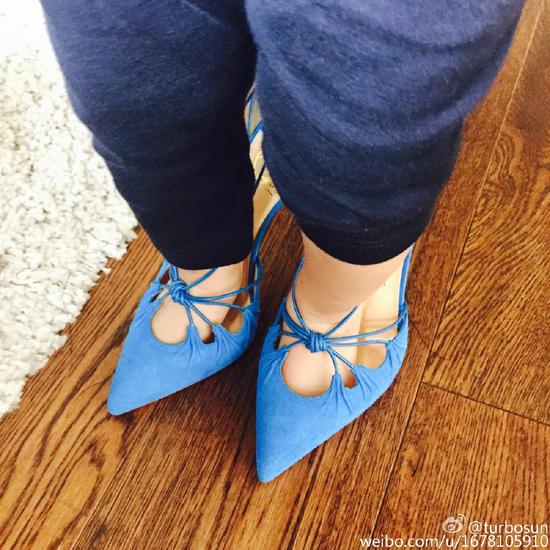 孙俪在微博上写道,“小花看我在试装,然后情不自禁的,就…这是女孩的天性…看来更衣间上锁的时间要提前了”,并晒出了两张小花妹妹穿着高跟鞋的照片。照片中,小花妹妹的小脚丫穿进妈妈蓝色高跟鞋当中十分萌趣。