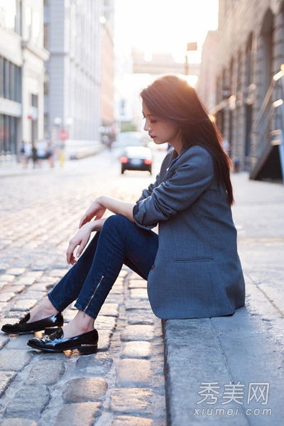 高圆圆纽约街拍大片曝光,穿着灰色小西装搭配牛仔裤,穿着亮面黑色小皮鞋,就这样随意的坐在街头的马路上,女神气息扑面而来,高圆圆一动不动的坐在那里,就是一道亮丽的风景线。