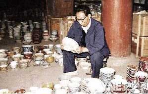 1985年, 梁匡忠在故宫文物库内鉴定从民间收集回的文物 翻拍/记者 匡林华