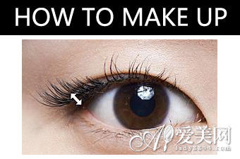 STEP3:用睫毛夹夹翘睫毛后,黑色睫毛膏“Z”字形向上刷,把睫毛刷得卷翘分明,下睫毛也要刷到,最后用米色眼影晕染下眼睑中部即可。