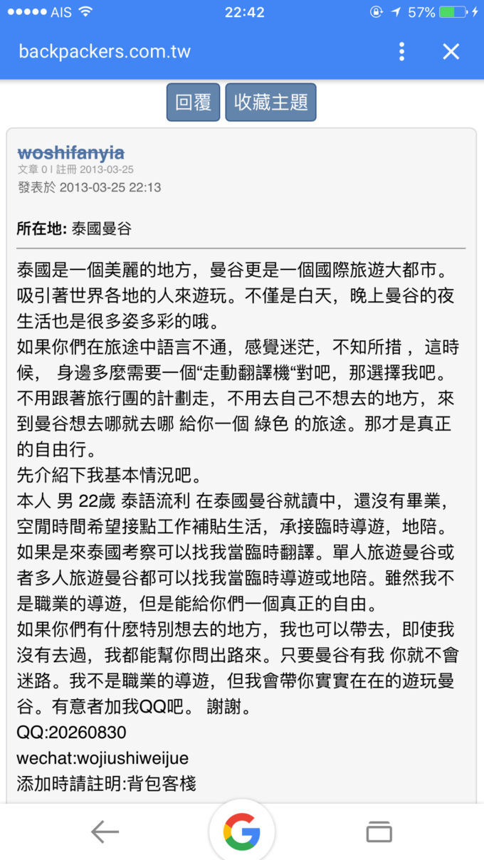 楼楼的飞机是11月4日早上7点在香港起飞,楼楼11月2号才全面确定泰国之行。所以慌乱的安排各种事情。楼楼的地陪是楼楼在穷游网上随意找的。因为看到信息比较新,所以也就点开了。加上微信以后简单的介绍了一下我出游泰国想干什么这样。他也含含糊糊的回复着。因为楼楼比较慌乱,所以也没多想什么。