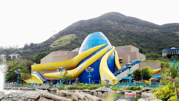 为了节约时间,荣哥快速游览了维多利亚港,坐上公交前往香港海洋公园,准备在那里度过剩余时间。