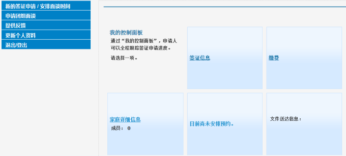 进入账户的主页面,点击左侧“安排面谈时间”,凭借收据编码,就可以进行预约了~