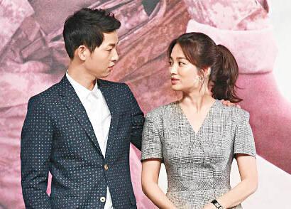 【宋仲基宋慧乔共享美食】前日抵港的宋仲基及宋慧乔,昨天中午出席《太阳的后裔》记者会,这是“双宋”首个海外宣传之旅,吸引过百传媒采访。中午十二时现身的宋仲基,以西装斯文造型登场,乔妹则身穿连身短裙大晒美腿,二人出场即引起哄动,合照时宋仲基主动搭住乔妹肩膀,又轻揽她的纤腰,充分体现戏内“柳大尉”呵护“姜医生”的本色!