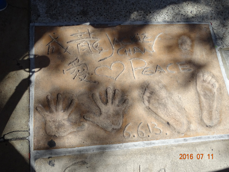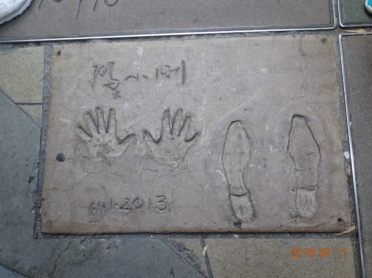 星光大道上还有近2300个明星在上面留下签名和手印而且这个数字还在以每月一至两名的速度递增这里的每颗星都表达了对电影广播电视话剧和录音行业作出巨大贡献的两千多名艺术家的敬意。拍照的人太多我挤上去只拍到了几位中国电影巨匠和明星的手印。