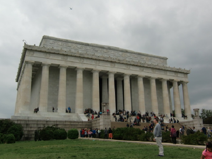 又到了林肯纪念堂,外形跟毛泽东纪念堂相仿,应该是仿造林肯纪念堂的,林肯纪念堂建造用时4年,而毛泽东纪念堂建造用时7个月。林肯在任期时南方军打败北方军,消除了奴隶制度,美国人为纪念林肯总统建立林肯纪念碑。
