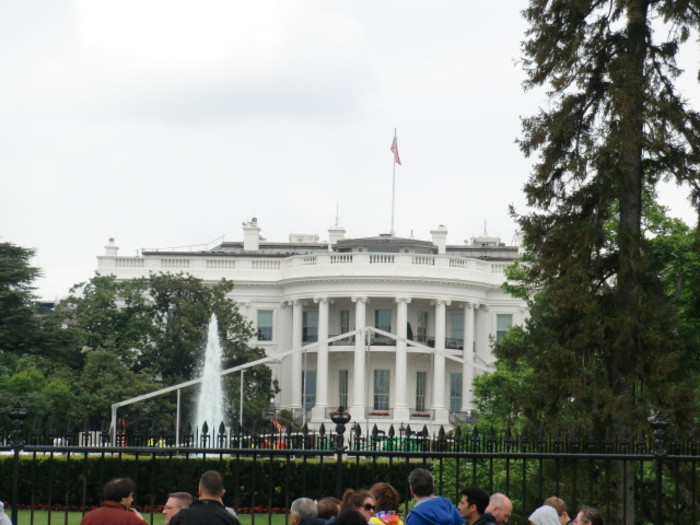 白宫,美国历届总统的行宫,1800年建造,在独立战争时,被大火烧着了,当时下了场大雨,浇灭了大火,整个建筑的是灰色的,在战争结束后重新粉刷了,以前叫白色屋子,后来叫白宫,白宫有三层楼,下面一层有展厅,二层东室是接待,西室是密室,只有总统可以进,不允许任何人进入,三层是总统和家人居住。