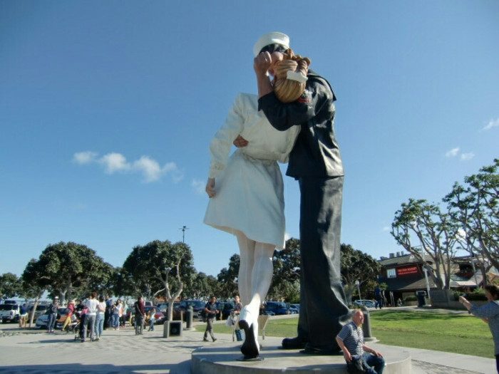 然后又赶往军港,里面有座雕像叫世纪之吻,那是一名海军出海打仗归来时,发现他的哥哥跟他一样都还活着,他情不自禁的抱起身边的一位美丽的女孩相拥而吻,被一名记者拍了下来,登载在报纸上,场景非常感人和美丽,后来有人就在军港,用这个画面塑造了此雕像。