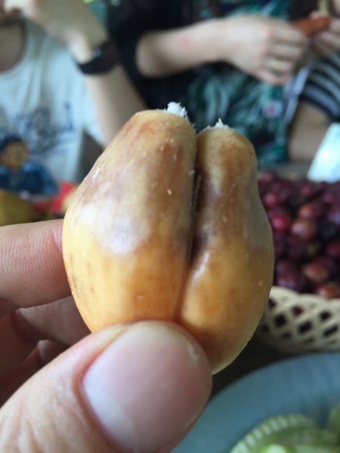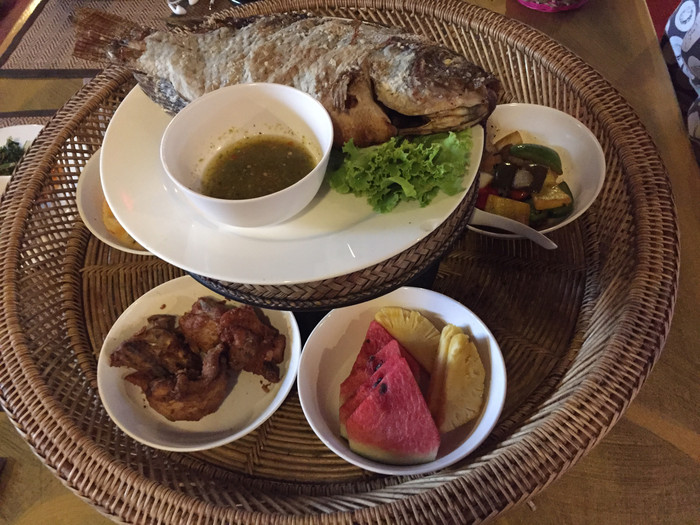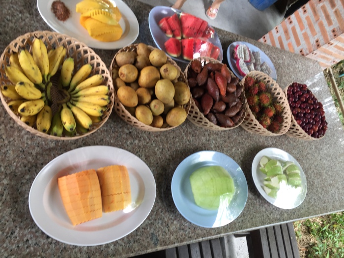 在这水上市场吃了好多小吃,大概都是15-50泰铢左右的~然后去吃午饭,真的是好心机。。。。不过午餐真的好随意,唯一和国内口味相似的就是空心菜,然后吃完就去吃水果餐,水果看起来很不新鲜。。。。最有印象的是一个外壳看起来很像穿山甲的水果,据说很补肾。。同行的妹纸叫他男朋友多吃点,说晚上要回去耕地的。。。