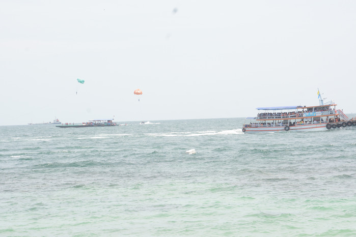这里是来泰国的玩水之地,水清,不要去最大的那个沙滩,人太多。下船后有地图,看看找到那个远一点的小沙滩,人少,水清。可以玩海底漫步、降落伞的,每人1000b.也就是20分钟就回到海边了,发呆游泳随便你,由于我们是最后一天的行程,赶下午5点的船回去的,感觉没玩够,不过注意啊,最晚的回市区的船就是5点了,晚了就要坐快艇啦。