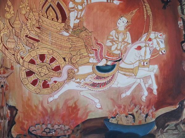 尚巴修寺是位于泰国曼谷北部的素攀武里县,这个寺庙是一个拥有了700多年历史的古老寺庙,虽说有700多年的历史,不过让这座寺庙出名的并非是它悠久的历史和文化,而是在这座寺庙中佛堂上“恐怖“的壁画!