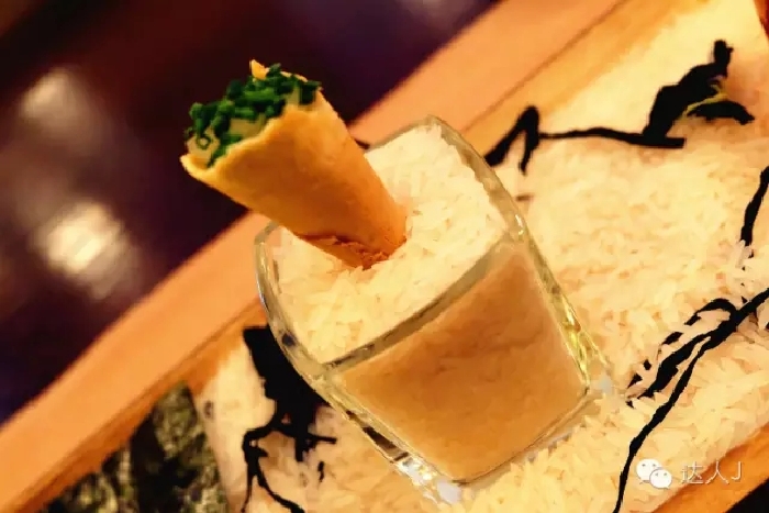 把手卷倒插在大米上,很有东方风韵,既美观又好吃