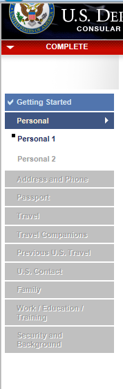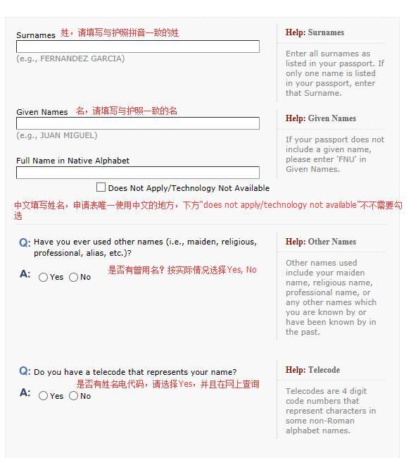 1.DS-160表格要求除了第一页”Personal Information 1” 中 ”Full Name in Native Alphabet“这一项填写申请人的中文全名外,其余项目均需要使用英文或者拼音填写完成。