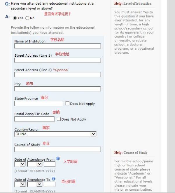学校部分按照最高学历开始倒序逐一添加并且填写,我当时是从硕士研究生一直填写到小学。填写完毕后,点击Save,重复第11和12步进入下一页面。