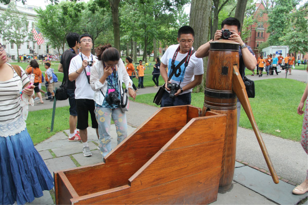 楼前的庭院中还有木制的水井!在哈佛园建立之初,没有供水和排水系统,主要依赖地下水生存,这口水井是供学生日常生活取水所用。原始的水井在一次校园狂欢中被损毁,现存的是复制品,用以纪念当时的哈佛校园生活。