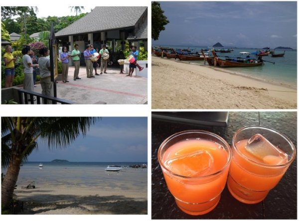 我可以负责任的说,Holiday Inn 是我们这次住的最满意的一家酒店,环境好,服务好,风景好。我们一下船,就有工作人员列队迎接,还表演了一段打击乐来欢迎我们,特别欢乐。行李不用管,直接有人帮忙放在行李处,然后工作人员把我们引领到接待处,其实就是酒店的开放式餐厅,面朝大海,风景无敌。酒店的welcome drink端上来,非常好喝啊。