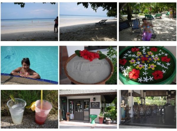 安顿好了我和张老板就得瑟着出去游泳了,酒店里有两个泳池,也可以直接下海,PP岛的海水那是真干净,下午退潮了,沙滩上可以看到好多小鱼和螃蟹。沙滩上有免费的躺椅,吊床,秋千,浴巾可以去酒店里的水上中心去借,如果想体验浮潜,水上中心也可以借到面具和脚蹼,都是免费的,登记一下房间号就可以了。