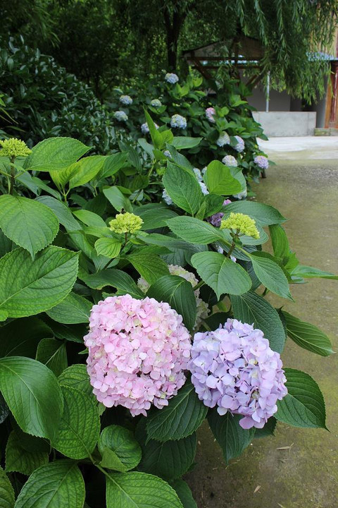 在酒店听着雨声淅淅沥沥到10点,心里那种不甘心的感觉越来越强烈,最后还是忍不住,拉上一个伴,打上伞,拿着电筒愤愤然走了出去。新村此时千寻里的画面感越发强烈,夜幕下,那些山间小楼灯火阑珊,店员忙活着烤羊烤鸡,游客觥筹交错间嬉笑怒骂,不时传来还不走音的高歌……灯光渐暗处,小雨淅沥,打湿了的绣球花静静地在半明半暗间自顾自继续清雅。恍然汤婆婆的温泉屋,清幽暗夜的花园背后,一扇透光的门里面便是夜幕下才有的灯火通明的花花世界。我爱千寻的世界,所以恍然间很喜欢这种氛围。