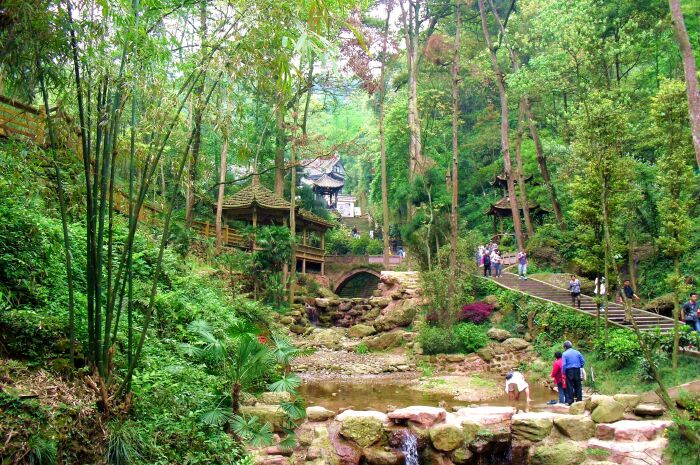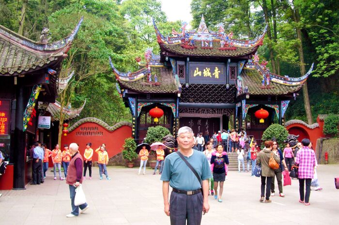接下来,我们去青城山。青城山的幽是天下闻名,是道教名山,2000多年前天师张陵来到青城山,结茅传道,以天师洞为核心,四周有几十座道观。另外这儿有石梯千级,曲径通幽,到处都是繁茂苍翠的林木,溪水孱孱,美不胜收。可惜没有时间到后山去玩玩,都说后山更加幽静,美丽。