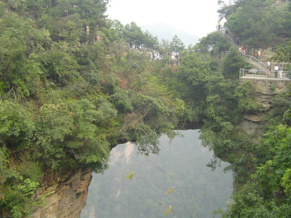 游览袁家界主要是自上而下欣赏峡谷风景,景点有“迷魂台”,“天下第一桥”等,“天下第一桥”是山体自然生成架在峡谷之上的一条石桥,远看很险,是个王牌景点,一定要走走,不过第二天游的另外一座桥还要刺激很多很多,这个是后话。一路上景点不少,都是人们根据山体形状联想出来的,还是那句,充分发挥你的想象力吧。