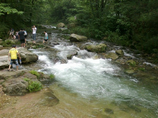 先游金鞭溪,这里可是天然氧吧哦,在广州呆久了,对清新空气真是饥渴啊,先使劲吸两口再说,反正免费的。一路上观看旁边峭壁上的景点有观音送子、金鞭岩、文星岩、紫草潭、千里相会,猪八戒娶媳妇(《西游记》曾在这里取景)等等,都不错,反正尽情发挥你的想象力吧!