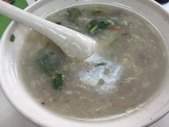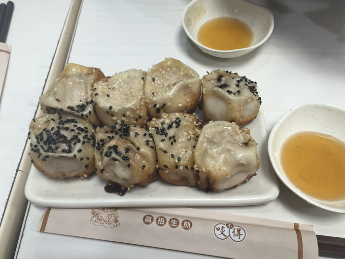 天上又下起了蒙蒙细雨,想着打道回府又叫不到车,看到有家叫咬不得的生煎小吃店,里面的客人还挺多,于是就走进去看看,点了鲜肉生煎和虾肉生煎,红豆酒酿小圆子,和牛杂粉丝汤,味道还真的是让人感觉惊喜,生煎皮薄馅多,汁水也很多很鲜,酒酿小圆子是文艳的最爱,牛杂粉丝汤味道也很好,