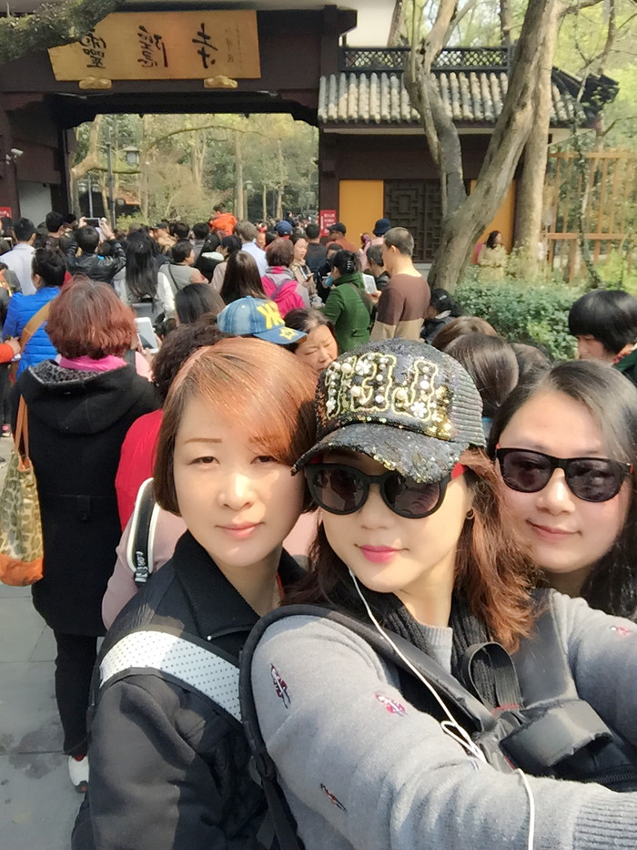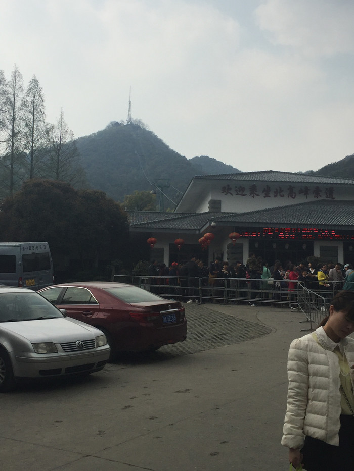 走到外面看到北高峰索道,每人来回40元,心里有点痒痒,但看着那排队的长龙心里盘算着时间是否来得及,问了售票员,不算排队的时间来回大概二十分钟样子,但是加上排队的时间要两个半小时,