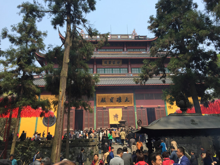 入到灵隐寺人头揣动,进入庙门顶礼膜拜,三支清香是庙里赠送的,千万不要去买高价香哦。终于见到了大名鼎鼎的大雄宝殿,之前都是在爸妈去杭州的照片上看到,今天自己终于也置身此景了。