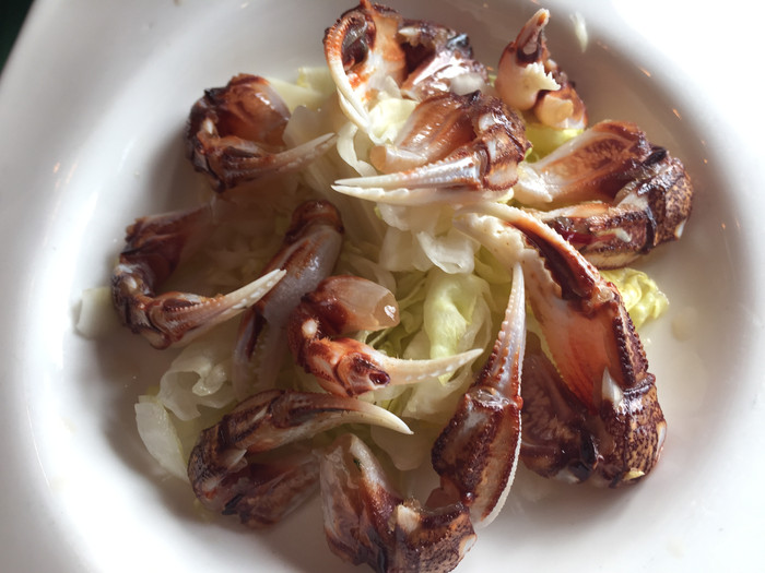 想着上午出租司机大哥的话,先去找公交7路,到那一看直接崩溃,候车大厅挤满了人,没有个把小时休想坐到车,找出租找了半天,哪怕是滴滴打车都没有人载,正在苦恼呢,一个开黑车的司机问我们要不要车,问了一下价格,60元,比起上午翻了一翻,要啊,现在哪怕是100也要,司机大哥居然说让我导个航,我去啊,还好各种出游神器APP我都有啊,高德周星星走起,一路走来,周星星还算靠谱,把我们带出了景区,杭州的交通我也是服了,堵得比魔都都厉害,佩服司机大哥的车技,那上下坡陡的,开的还是手动挡,还没佩服完,进了西湖隧道又堵,临近出口时,大哥终于没有屏牢离合熄火了。三点不到终于到了杭州酒家,推门进去服务员说午市已经结束,晚市还没有开始,淌汗,退门而出,想着去外婆家看看,一看排队的长龙又悻悻然离开,看到隔壁的香江蕉叶,决定进去吃点。